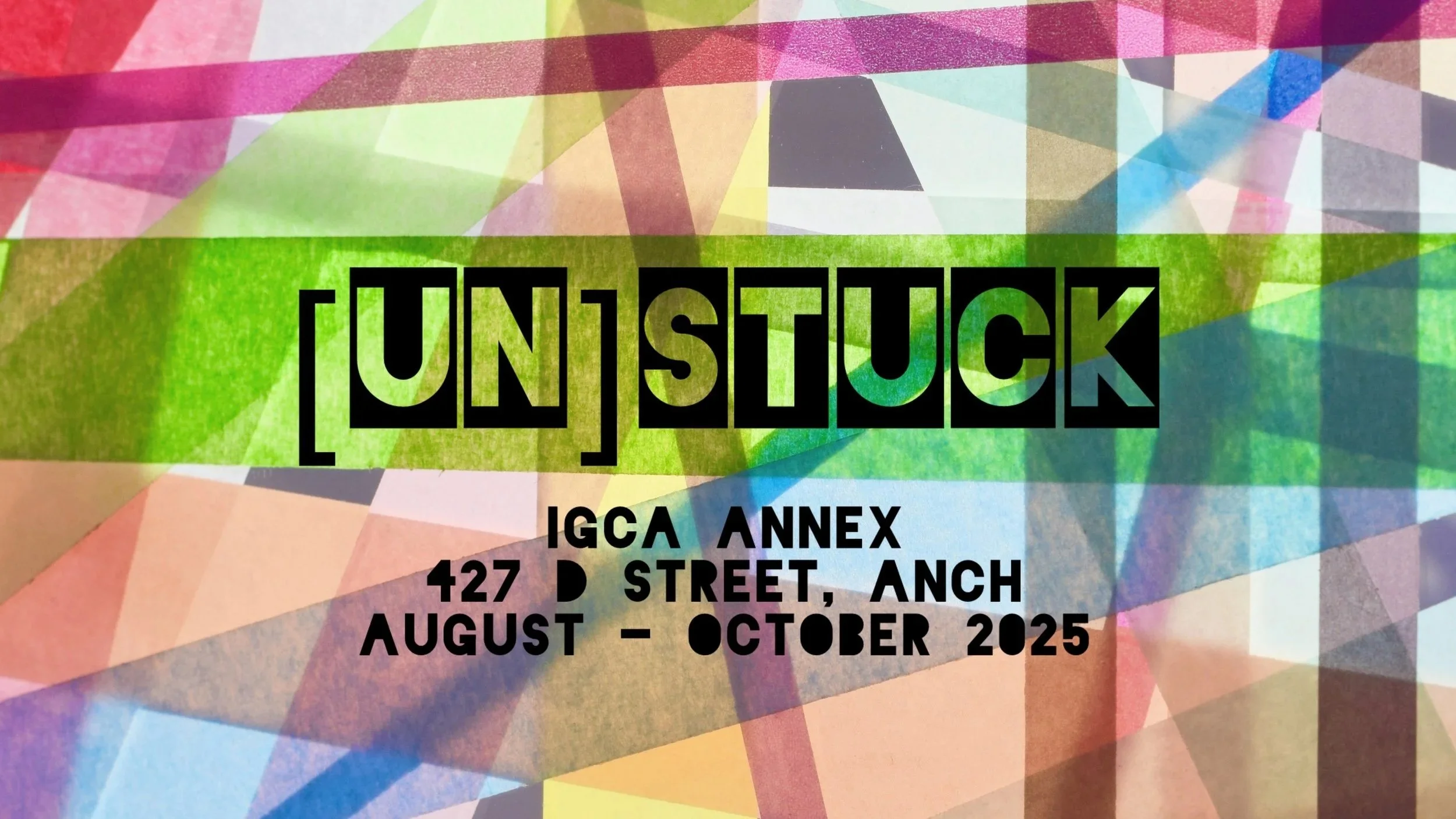 [UN]STUCK : an interactive installation for all ages. You are invited to the IGCA annex to enjoy and co-create an immersive community space & sensorial experience of line, color, texture. Over the next two months visitors will fill two annex walls with tape: a ubiquitous material stuck in the gray area of function vs. form. Is it THE most toss-able tool of our times, here to facilitate packaging, transporting, and creating with other mediums…or is it the medium itself?